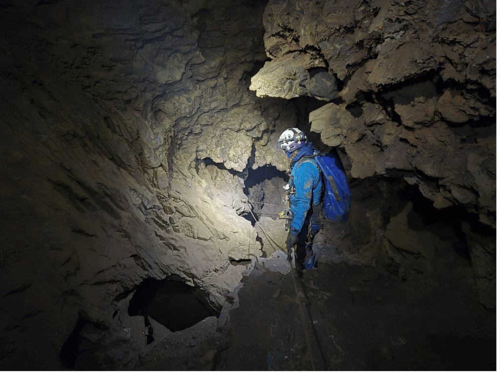 Cette zone, juste en dessous du campement, a été parcourue de nombreuses fois depuis des dizaines d’années. Et pourtant, Isadora et Jocelyn, nouveaux venus, ont découvert une nouvelle entrée en 2023, nommée LL22. Là, pas de grand puits, mais une succession de passages étroits qui, cèdent un à un sous leur acharnement, jusqu’à atteindre -124m de profondeur.