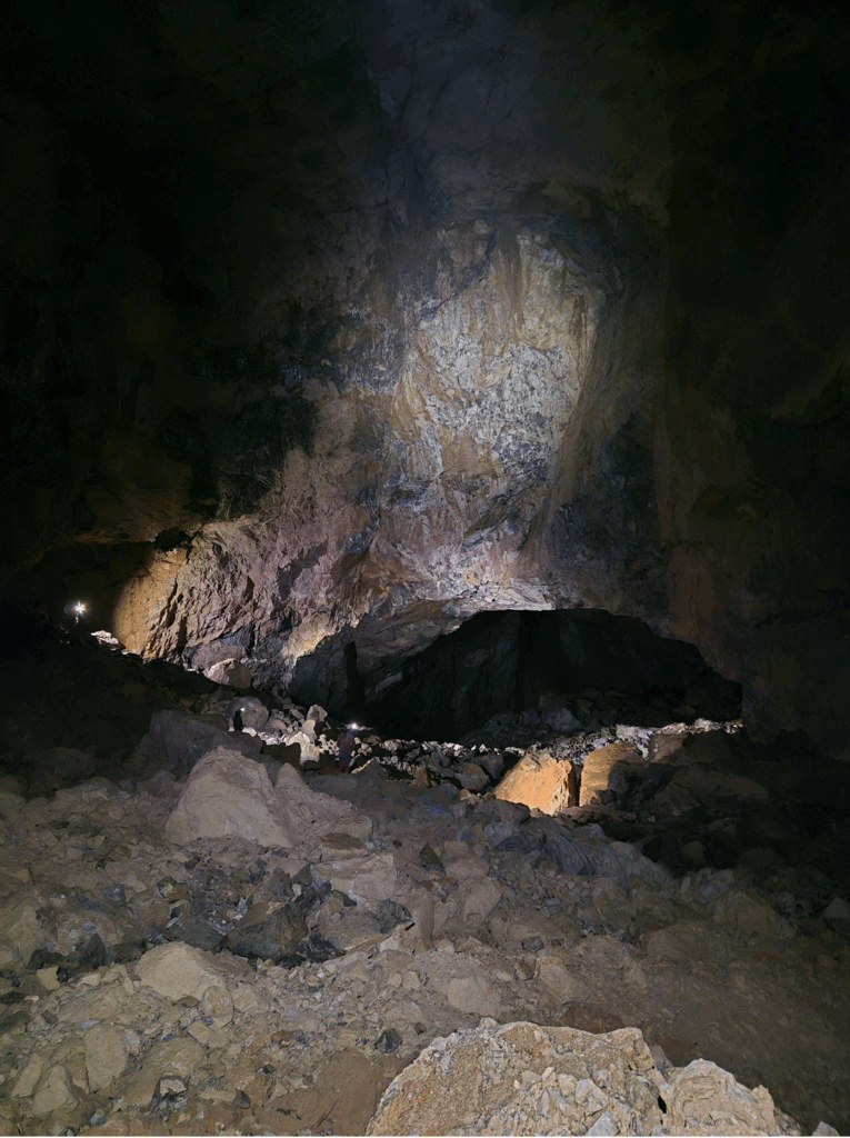 Une succession de puits avait permis de descendre à -300m en 2022, puis d’atteindre la profondeur de -425m en 2023, à la tête d’un puits énorme, évalué à 300m au lancer de caillou.