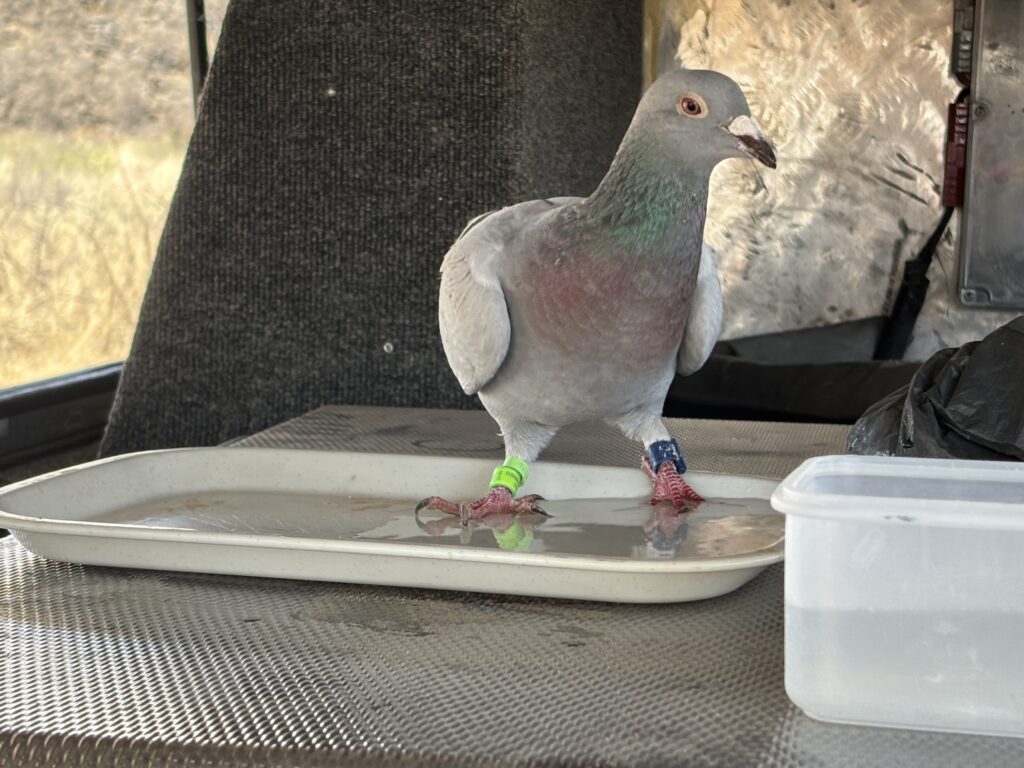 Un pigeon bagué que nous avons appelé Joséphine s’est invité sur notre camp avancé le temps de notre séjour, prenant un 4×4 comme pigeonnier. Elle nous a tenue compagnie durant 15 jours, nous attendant quand nous rentrions au camp de base.