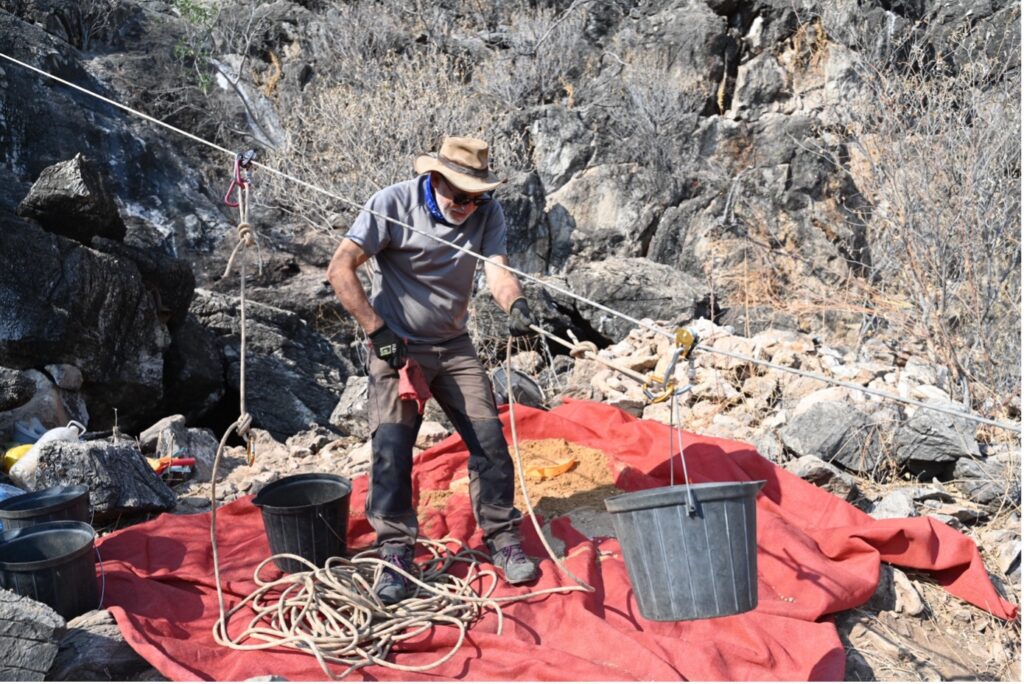 L’expédition Hominins in Botswana : Karst research project s’est déroulé du 30 septembre au 21 octobre 2025. L’objectif premier de la mission est la recherche d’hominines anciens dans les karsts du Botswana. Une telle découverte montrerait que d’autres fragments du Berceau de l’humanité (origine du genre Homo) existent en Afrique et validerait l‘idée d’une origine panafricaine de notre genre. L’une des principales activités cette fois-ci était d’extraire la brèche décalcifiée de Bone cave afin de faire sécher le sédiment au soleil et permettre un tamisage plus facile et plus rapide.