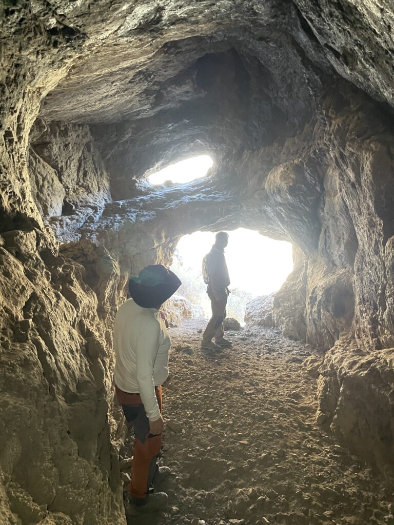 Spéléologie : Laurent Bruxelles, Véronique Olivier et Philippe Auriol ont visité plusieurs cavités pour étayer le mode de formation des grottes, des relevés stratigraphiques ont été dressés. La visite de Waxhou Sud a permis la découverte d’un babouin momifié en bas d’un aven piège, à – 50 m au pied d’un talus de sédiments. Il a été scanné dans sa position initiale, la même que Little foot, l’australopithèque découvert en 1997 à Sterkfontein. Le babouin a été sorti de la cavité en duo par temps bien sec pour qu’il n’y ait pas de reprise de pourriture à la sortie du gouffre. Philippe a levé le corps et Véro a assuré son transport. La momie a été présentée sur le campus éphémère de la mission avant de partir pour être exposé au musée d’histoire naturelle de Gaborone et ainsi documenter l’intérêt des avens pièges dans la recherche des fossiles.