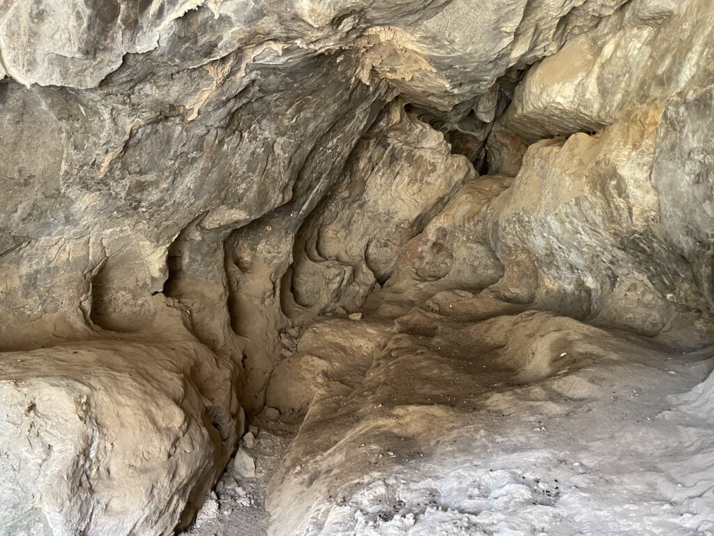 La grotte de Khatak est également topographiée pour les besoins de la mission archéologique. Elle comporte un nombre impressionnant de matériel lithique. Il s’agit d’un site ayant connu plusieurs habitats successifs de néandertaliens. Le sol rejoignant le plafond, nous n’avons pas pu l’explorer plus avant sans désober, ce que Frédérique ne souhaitait pas, pour ne pas effacer les premiers niveaux de vestiges anthropiques et paléontologiques. Son développement actuel est de 25 m avec un porche d’entrée de 13 m par 18 m de hauteur.