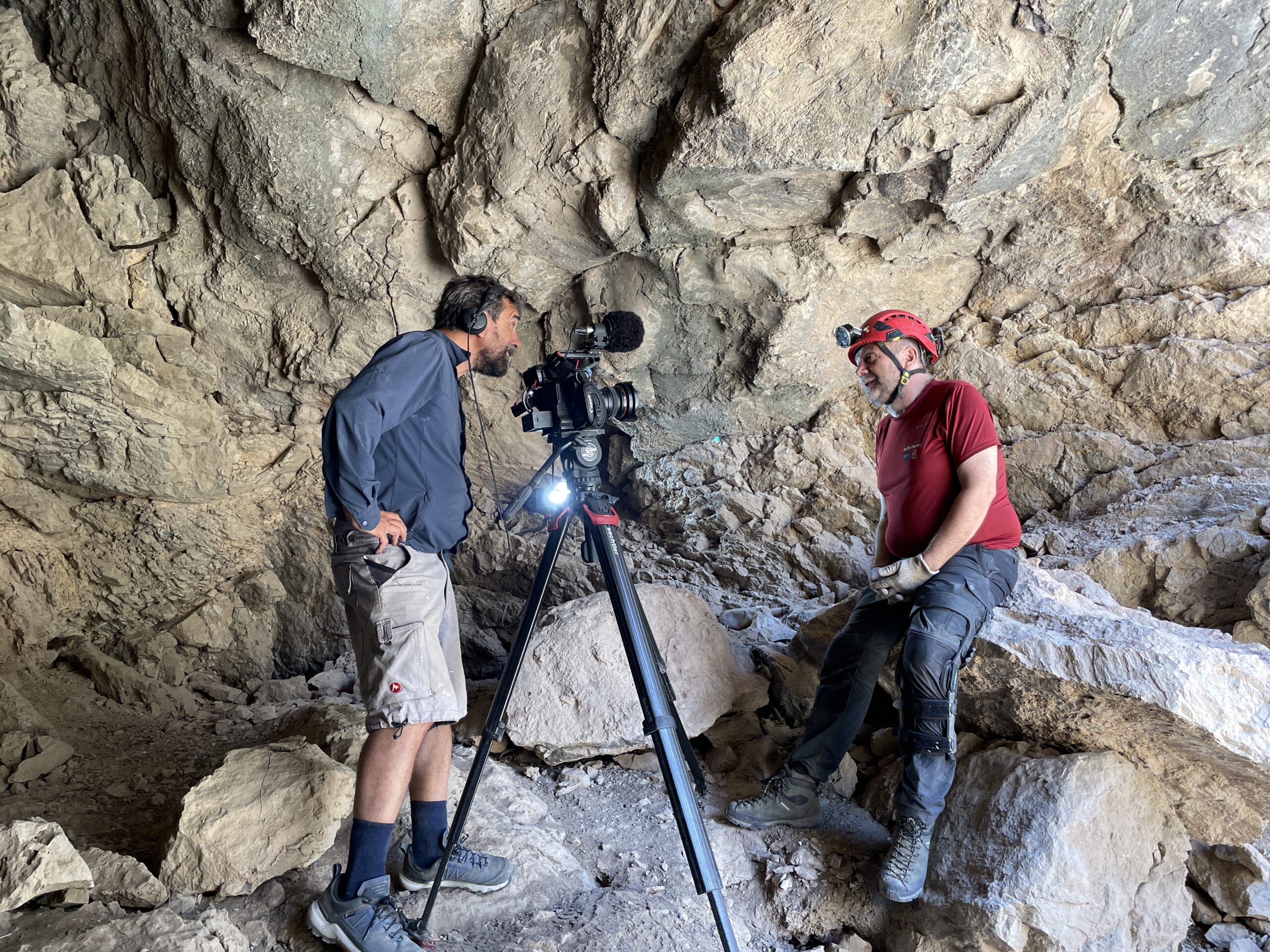 Interview de Lionel Barriquand dans la grotte d’Adjina Karmar. Photo VOL